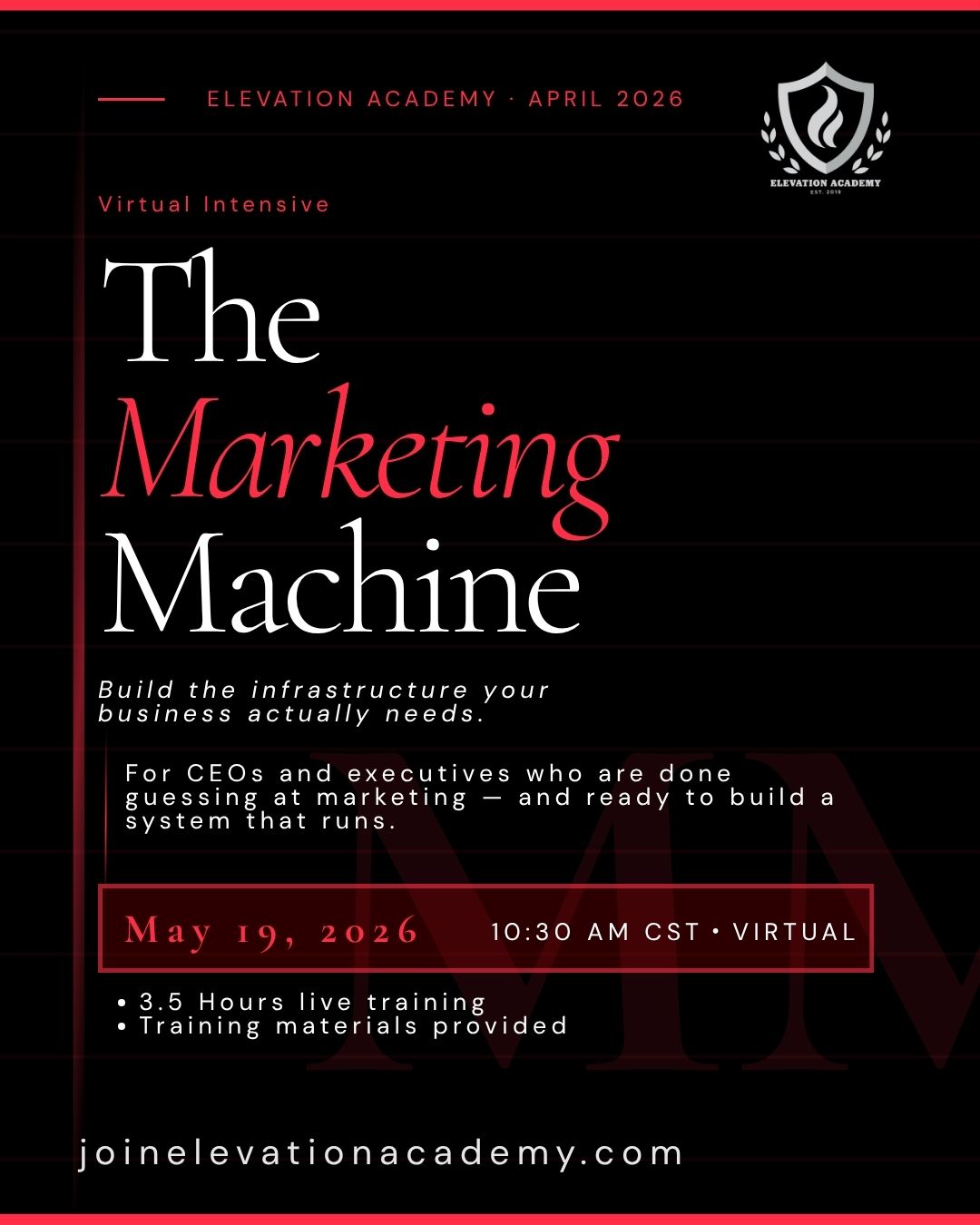 That's what Elevation Academy exists for. Not to give you more marketing information — you have enough of that. To give you the structure, the guidance, and the dedicated time to actually build it. In a room full of people doing the same work, with someone who has done this hundreds of times leading the way.